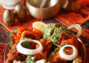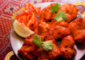 탄두리에 캐슈넛 와 크림 마리네이드에 담근 치킨을 요거트, 생강, 마늘로 즙을 낸 소스로 훈제한부드럽고 치킨